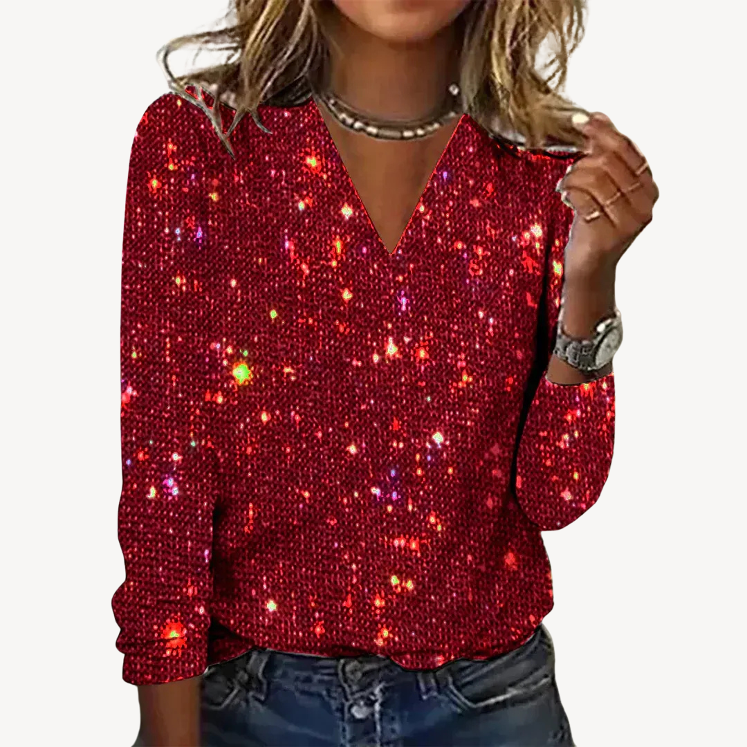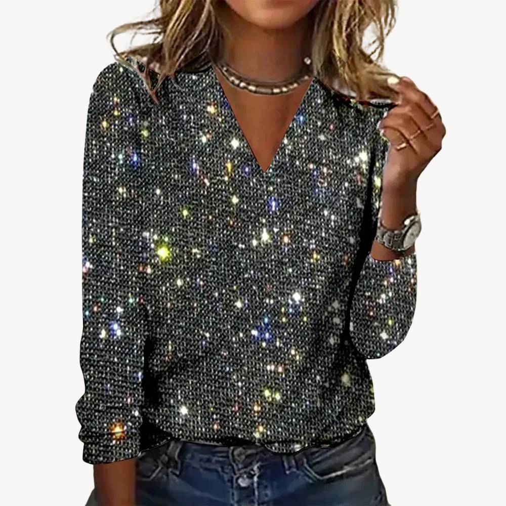 Sequin V-Neck Long Sleeve Top Women | Loravelle