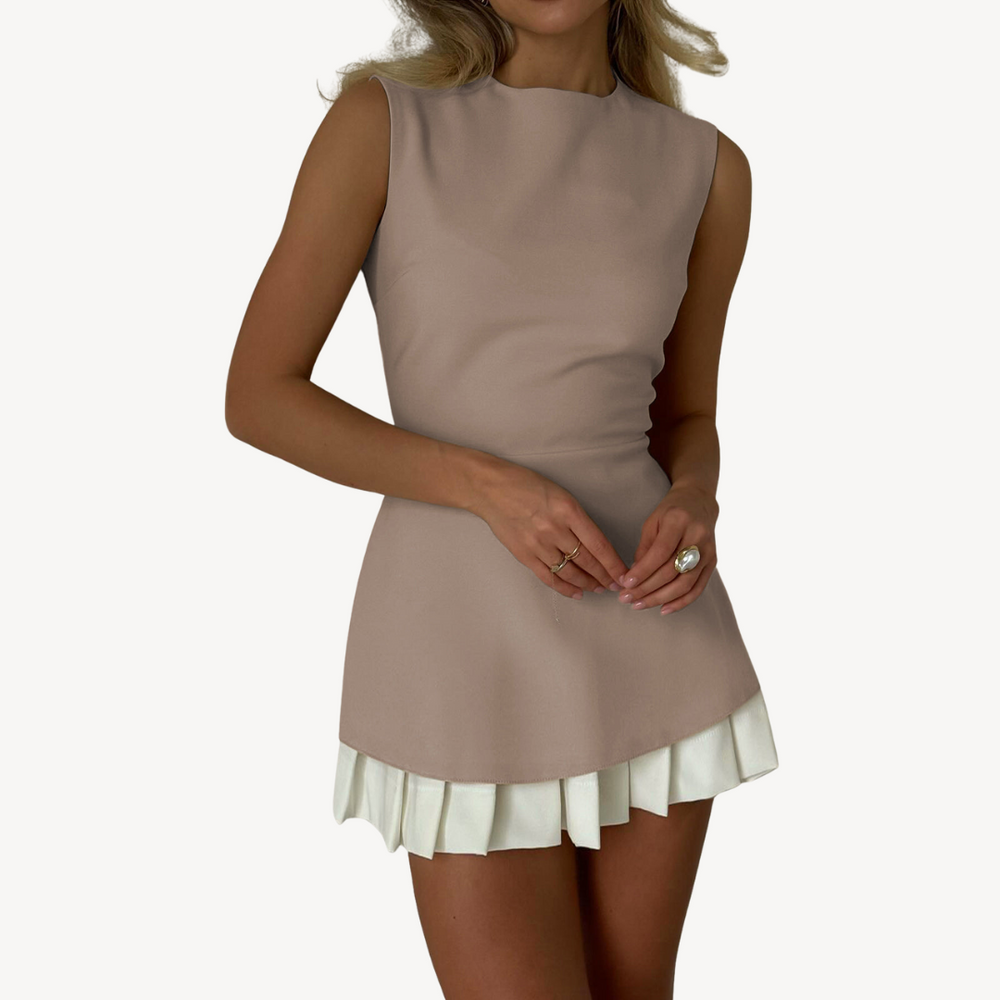 Sleeveless Color Block Pleated Mini Dress Women | Loravelle