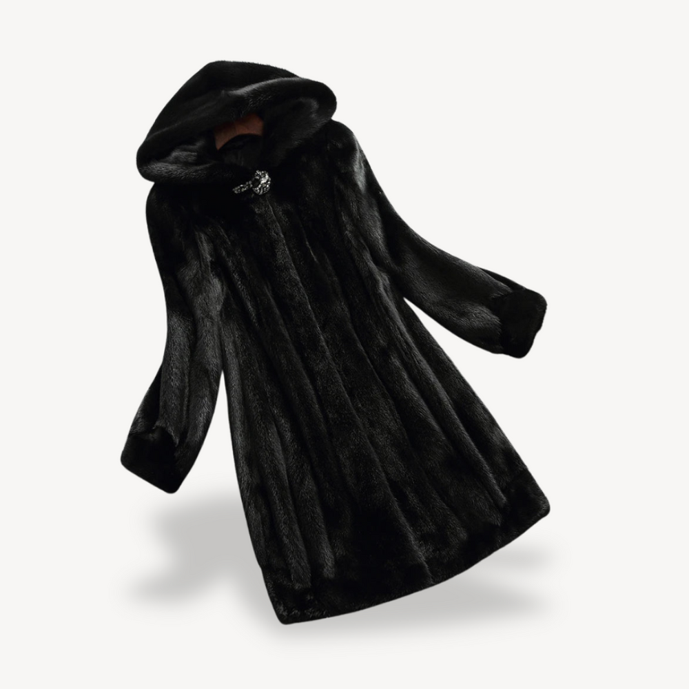 Women's Black Faux Fur Hooded Winter Coat Long Sleeve | Loravelle