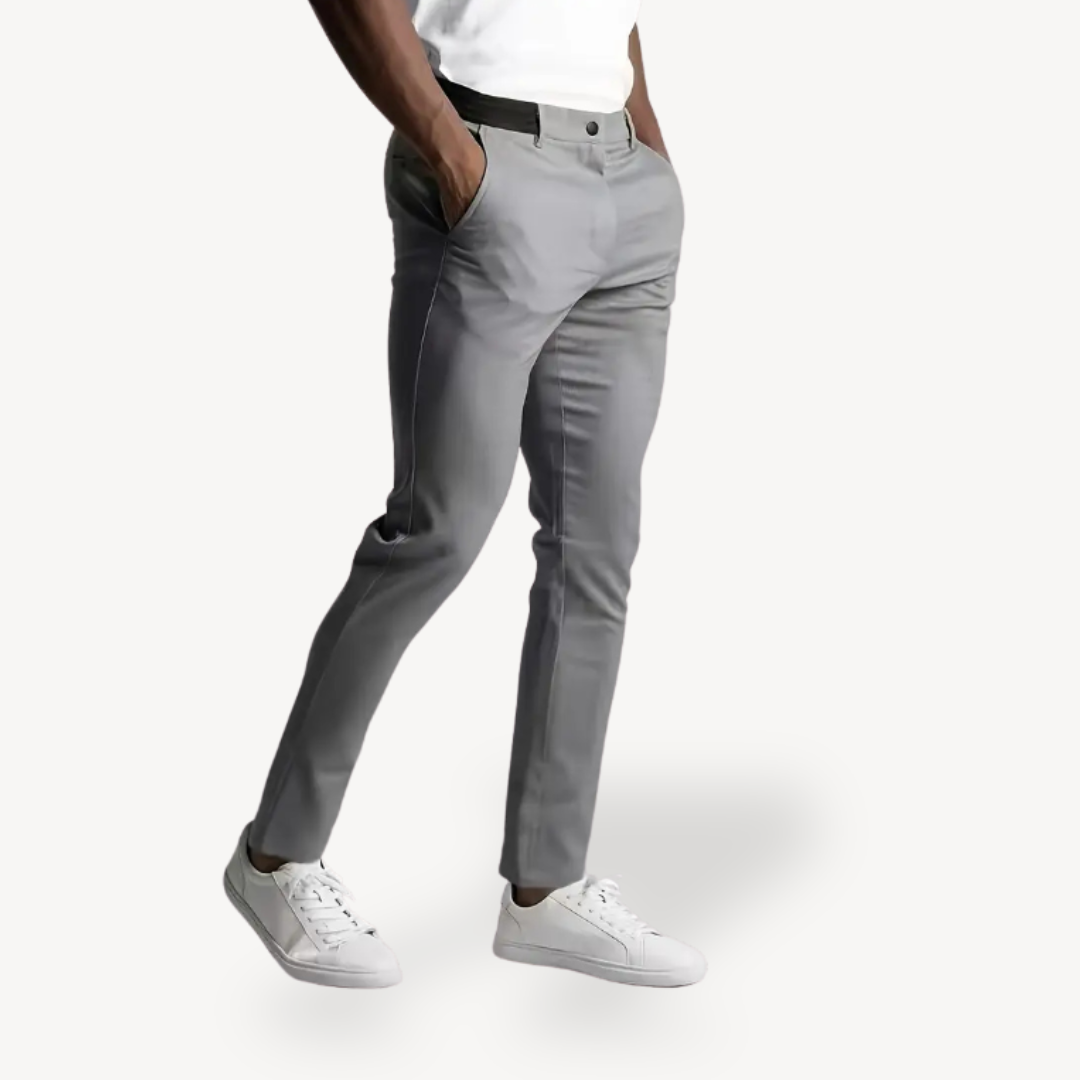 Discover the perfect blend of style and comfort with the Loravelle men's slim fit trousers. Designed for the modern adult man, these trousers are crafted from a high-quality, stretch polyester material, offering a sharp, tailored look with unparalleled freedom of movement. The versatile colors, including gray, black, and blue, make them an essential piece for both professional and casual settings, from the office to a night out.