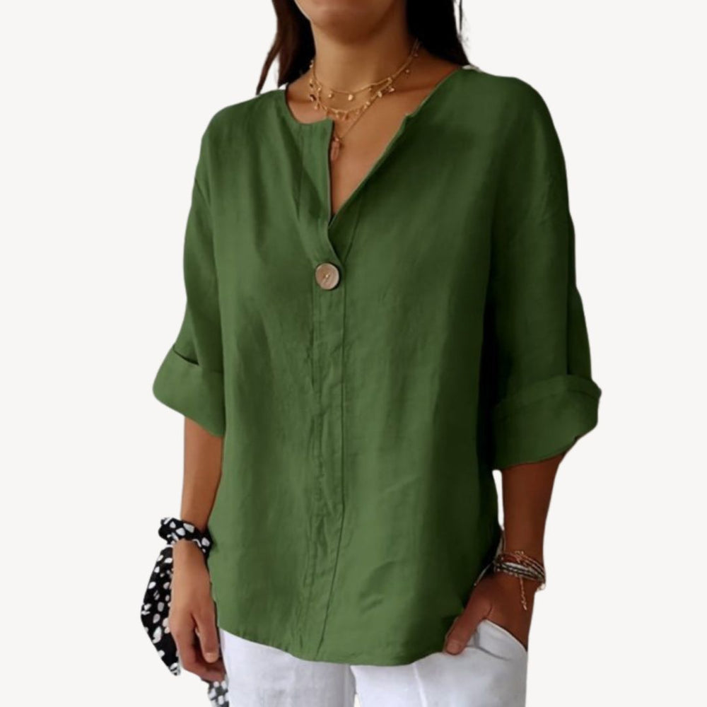 Women's Linen Long Sleeve V-Neck Blouse | Loravelle