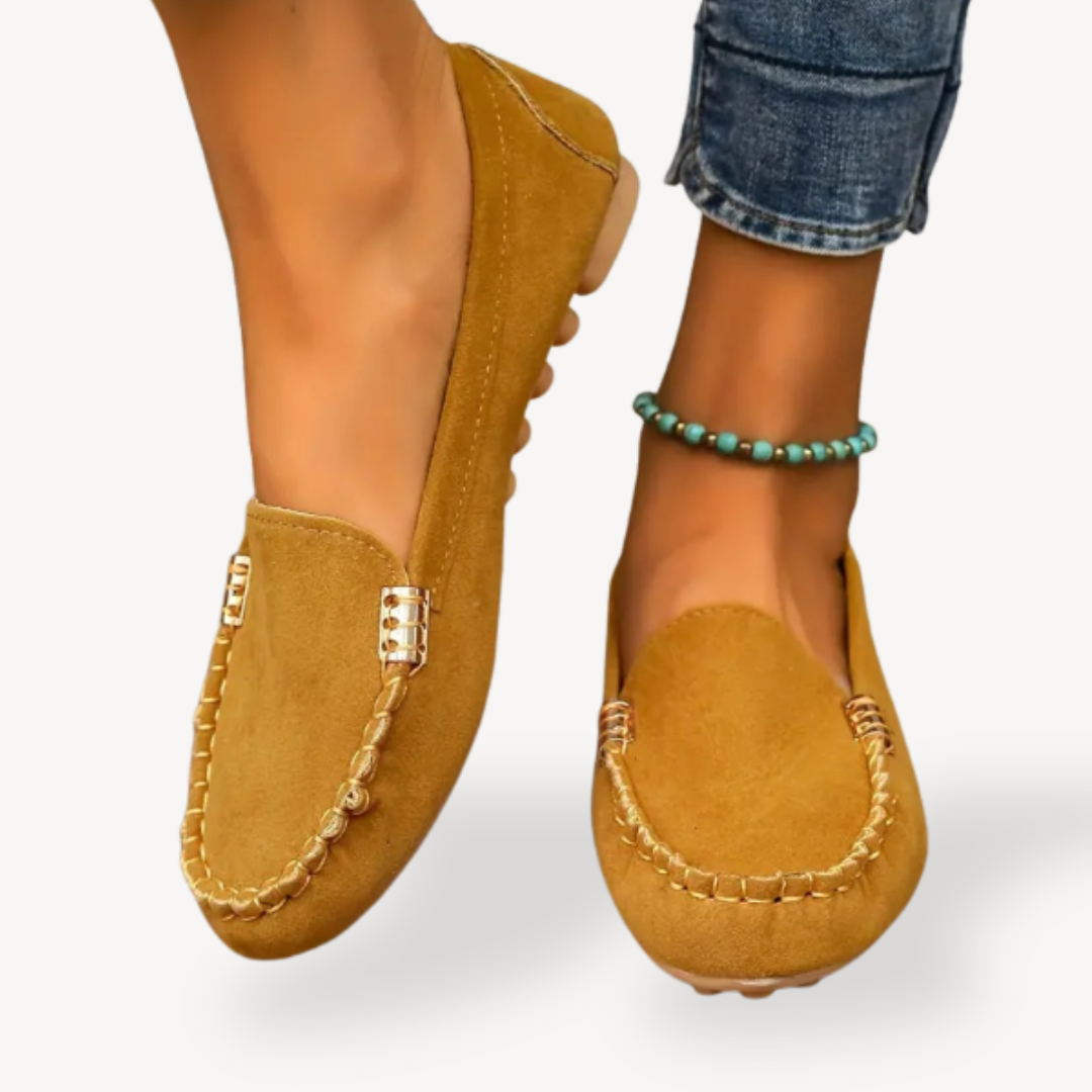 Orthopedic Suede Loafers for Women – Comfortable Slip-On Shoes with Chain Detail | Loravelle