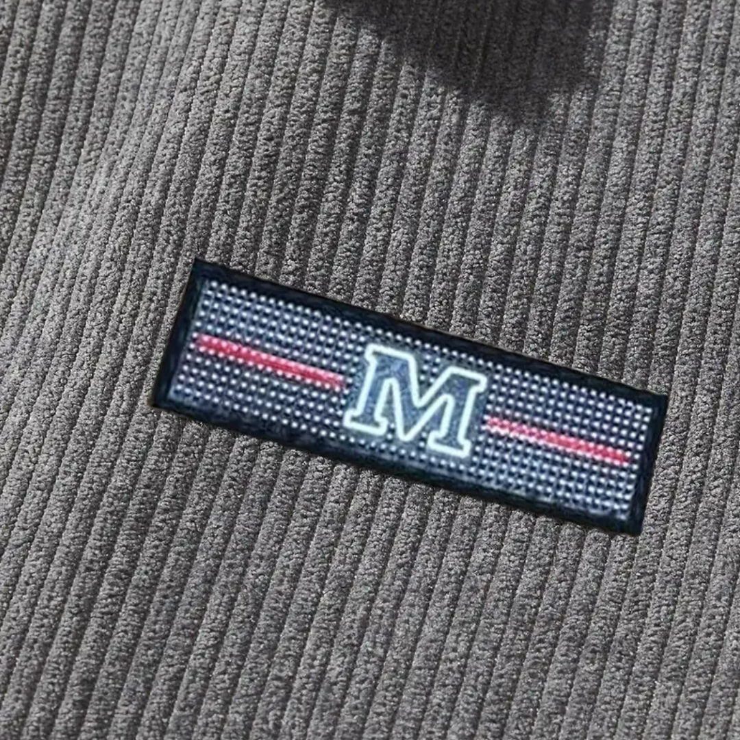 The Loravelle Men's Corduroy Sherpa Lined Bomber Jacket combines a classic bomber design with insulated lining for cold-weather wear.