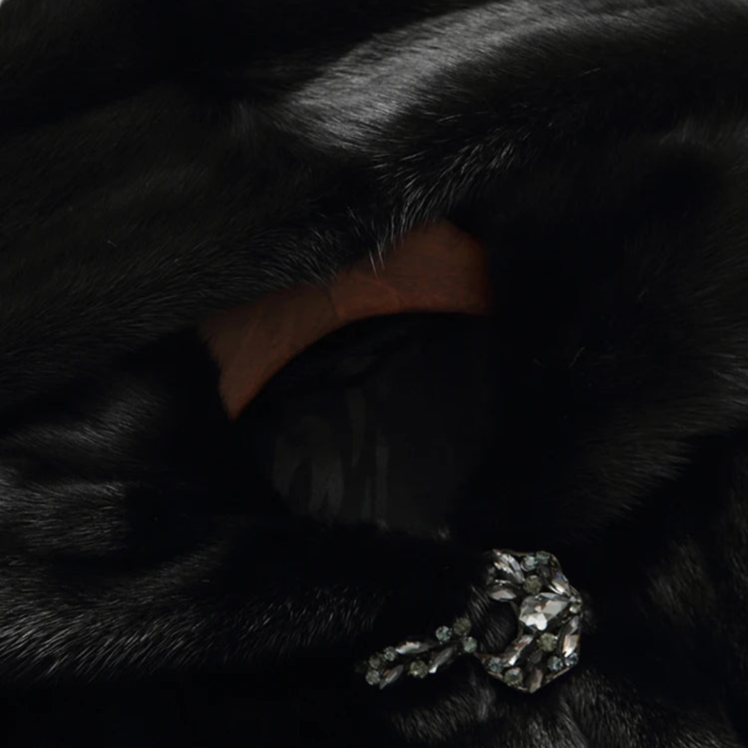 Women's Black Faux Fur Hooded Winter Coat Long Sleeve | Loravelle